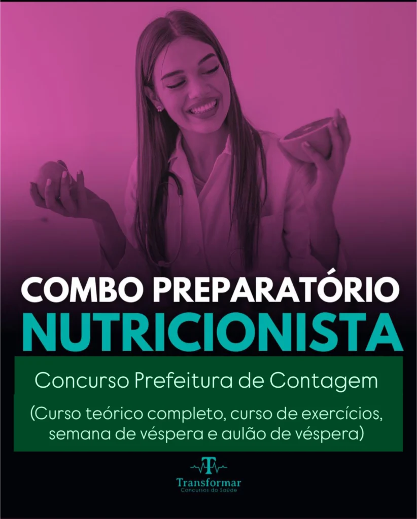 NUTRICIONISTAS – COMBO PREPARATÓRIO PREFEITURA DE CONTAGEM – MG – 4 CURSOS PELO PREÇO DE 1