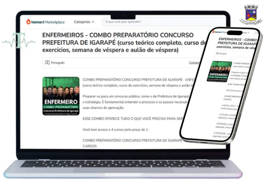 ENFERMEIROS – COMBO PREPARATÓRIO CONCURSO PREFEITURA DE IGARAPÉ (curso teórico completo, curso de exercícios, semana de véspera e aulão de véspera)