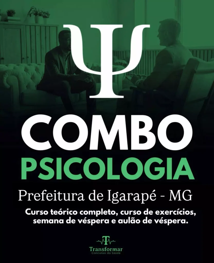 PSICOLOGIA – COMBO PREPARATÓRIO CONCURSO PREFEITURA DE IGARAPÉ (curso teórico completo, curso de exercícios, semana de véspera e aulão de véspera)