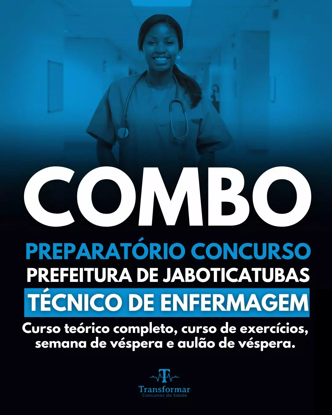 TÉCNICO EM ENFERMAGEM – CONCURSO PREFEITURA DE JABOTICATUBAS – COMBO DA APROVAÇÃO (curso teórico completo, curso de exercícios, semana de véspera e aulão de véspera)