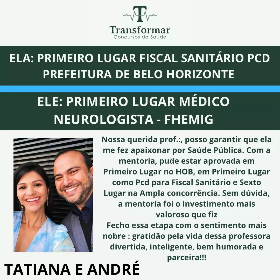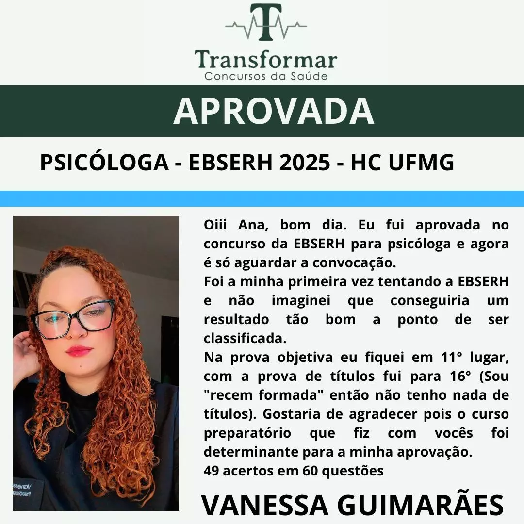 Sou a Professora Ana Flávia Pereira Alves – Psicóloga – Neuropsicóloga e Especialista em Saúde Pública, fundadora do curso TRANSFORMAR CONCURSOS DA SAÚDE. Fui residente no programa de Neonatologia do Hospital Sofia Feldman, Saúde da Criança no Hospital Municipal de Contagem e na Residência em Saúde da Mulher do Hospital Odilon Behrens. Atuei vários anos como Psicóloga no Hospital de Contagem e Atualmente sou Psicóloga Clínica, Professora de saúde pública e de Psicologia em cursinhos preparatórios para concursos e Faculdades. Atuo como Professora de saúde pública para concursos há quinze anos e sou muito feliz por isso, pois nesse processo, fui gratificada por poder acompanhar a evolução dos meus alunos e contribuir com milhares de alunos que conseguiram a aprovação no concurso desejado. Quer fazer parte do time dos APROVADOS?